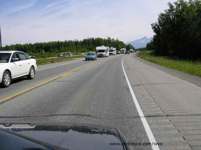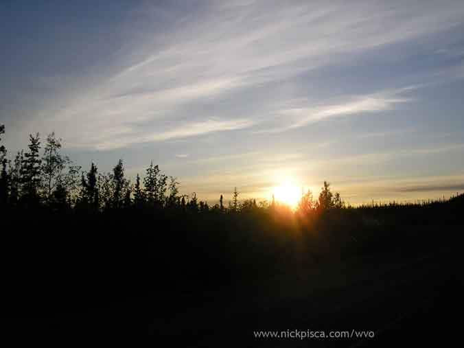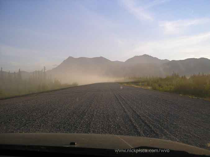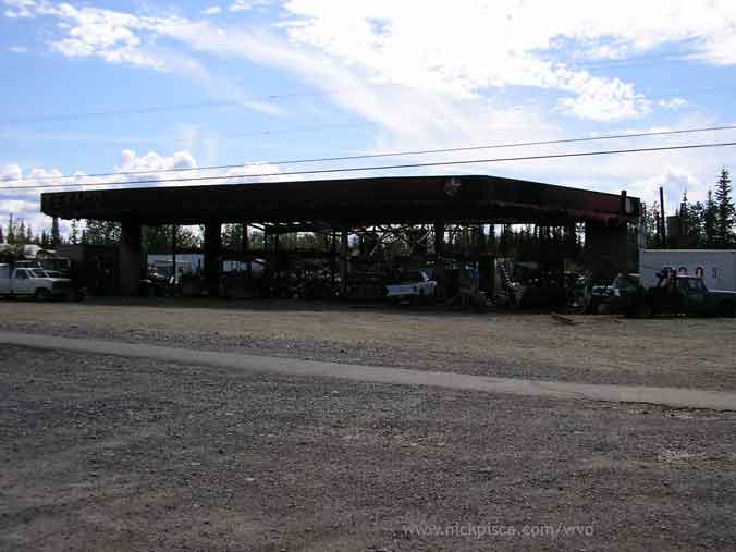We decided to crash out in Fort Nelson even though we could have probably made it to Watson Lake that night. However, just shy of Fort Nelson we ran into a HAIL storm (what next? ![]() We left Fort Nelson at 4:00 am and was surprised to see how bright it was at 3:30 am. I don’t think it got dark at all that night. ![]() Alaska Highway, British Columbia. 180520. Thursday. Added 1.75 cubes. Laird Hot Springs, British Columbia. 8:00am Thursday. We were told that the hot springs is a must-do on the Alaskan Highway, but we were concerned about time. We stopped off to investigate the springs and if we are on the plus side of the south-bound journey, we’ll test out the water. ![]() Alaska Highway, Yukon Territory. 180782. Thursday. Added.1.25 cubes. Also, on the road, a sedan kicked up a rock from the upcoming direction and cracked my windshield. Crap. ![]() One the way up, we saw a good deal of wild-life on the side of the road. Several bison, many moose, possibly some caribou, a wolf, some sheep and three different instances of black bears. Also we saw what appeared to be a wild horse. Unlike other drivers we witnessed on the Alaskan Highway, we refused to feed the animals. ![]() Whitehorse, Yukon Territory. 180918. 2:45pm Thursday. Let me just say, Whitehorse rocks! We were planning on getting in Whitehorse around 5pm, but we made some good time. There was only one 30-some mile stretch before Watson Lake that was rather circuitous, but the rest was smooth-going. We got a hold of Skeeter and Mike and discussed the trip and other VO topics. Mike hooked us up for the trip thru Alaska and Skeeter committed to some cubes for the journey back to Seattle. The town is quite small and you can walk the whole place in an hour or less. The main drag (2nd and Main St) has many shops and restaurants. We ate caribou burger and halibut and chips at Klondike Ribs & Salmon BBQ and which was tight. And the scenery was great. ![]() Haines Junction, Yukon Territory. 180990. 7:45pm Thursday. Added 1.25 cubes. We are finally getting a steady radio station. It’s sort of like a NPR station, and maybe 15% static, but 100% better than nothing. We probably drove a 1000 kms with no radio, and a suggestion to future Alaskan Highway travelers: Bring an Ipod or CD player. There are no AM or FM (or short wave) radio for the 95% of the distance. I brought my laptop for the trip, but I don’t have many mp3’s; you can only listen to the same twenty songs so many times before it gets boring. Random image... ![]()