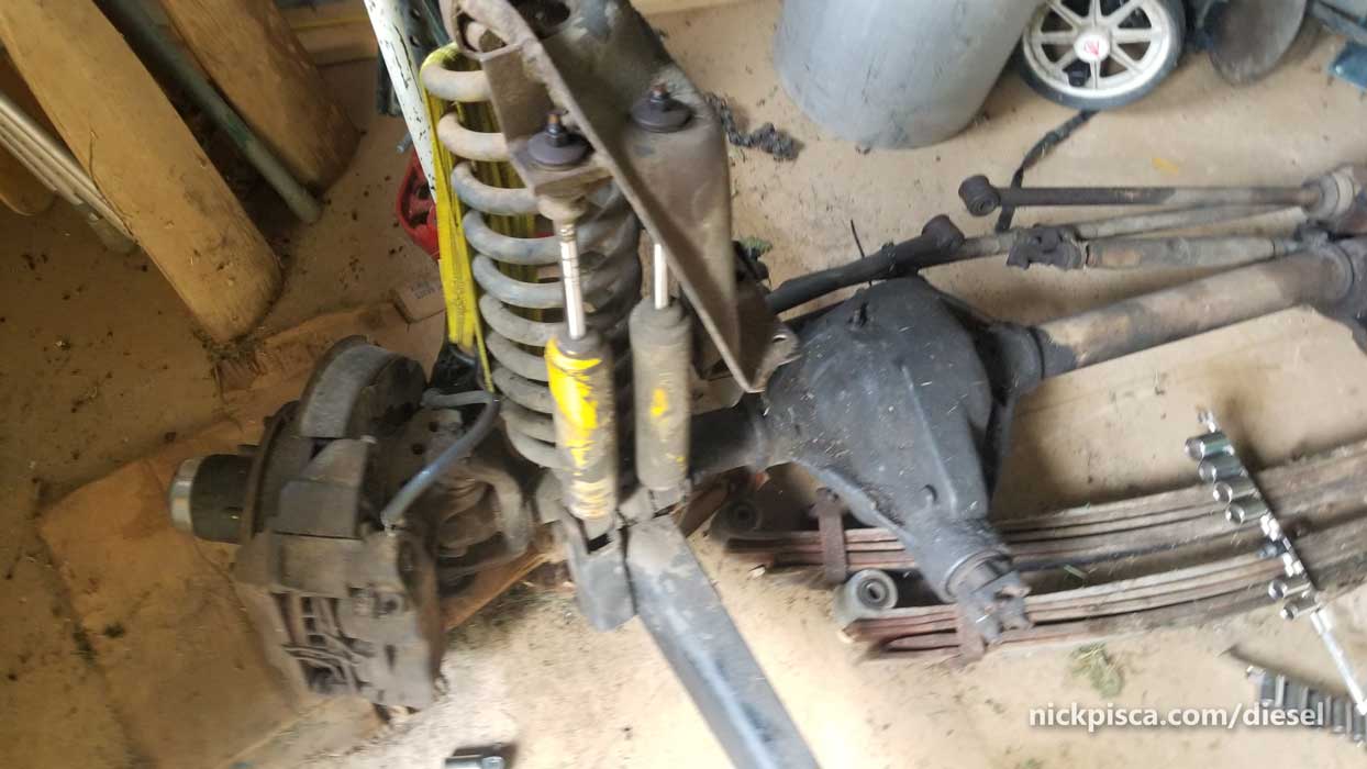 I removed the coil assembly, central stabilizers, and radius arms. Not in the photo. They are in the backyard, collecting dust and rust.