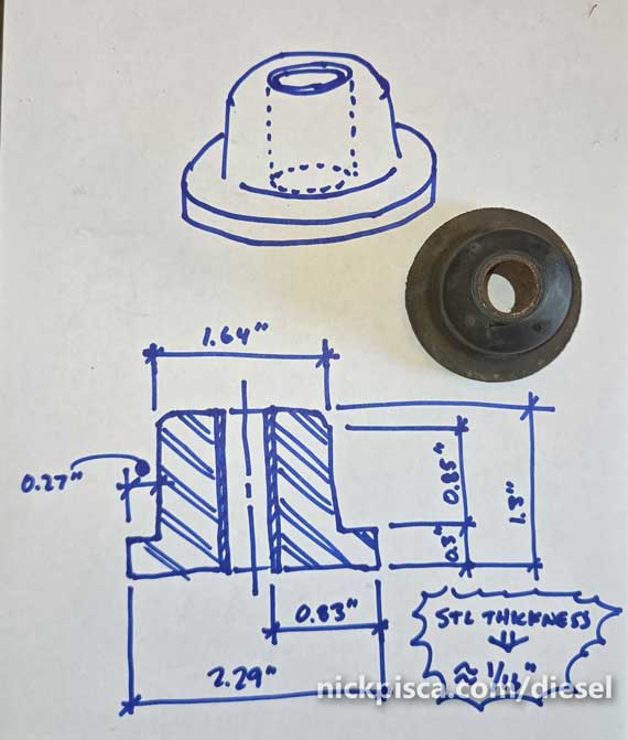 I’m cheap. But also, I have a lot of tools and resources. How hard could it be to get or make a rubber (or rubber-simulator) to be a shock absorber for the radius arm? I drew up a simple dimensional sketch to see what I could do.