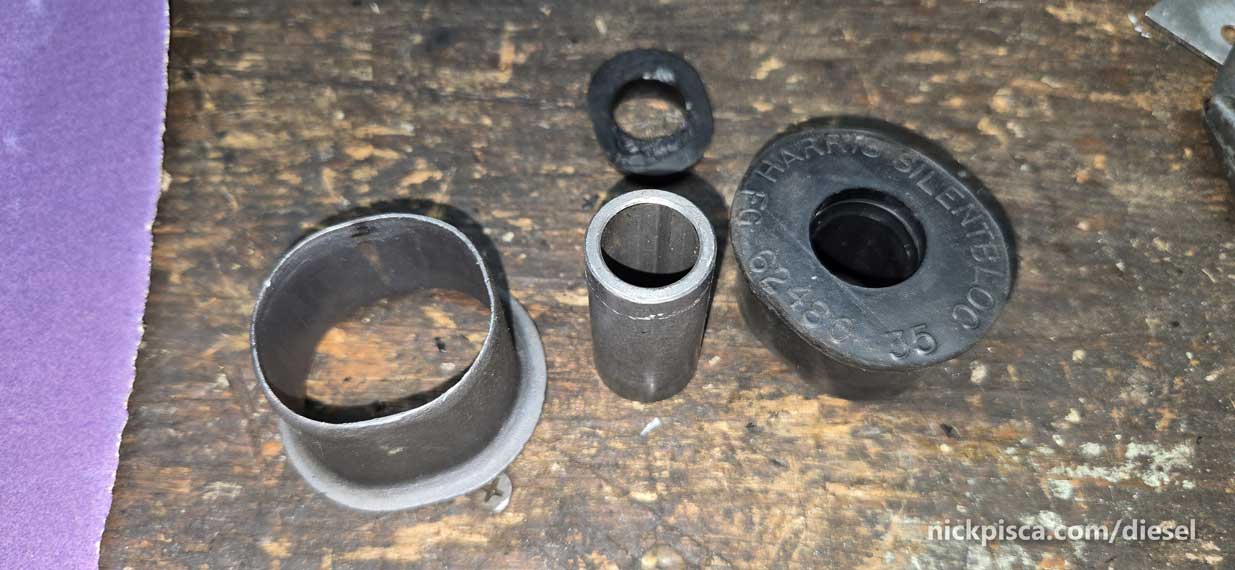 A quick google search didn’t find much from Lord Kinematics anymore. Likely out of business since the 90’s. I did find some distributors that could find a replacement bushing, but they wanted $35 PER BUSHING. And they aren’t even a direct fit. That’s 1/4 my budget for the whole axle restoration, just for radius arm bushings.