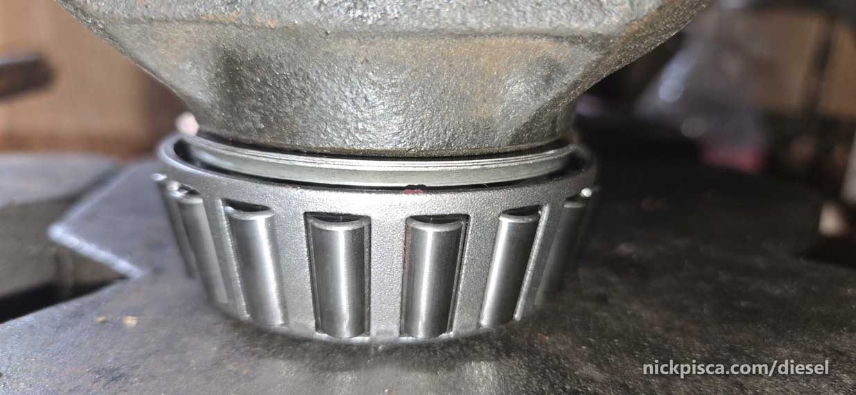 I had to resort to using the 4.10 bearings from the previous donor truck. Thankfully, it and the race were still in excellent shape.