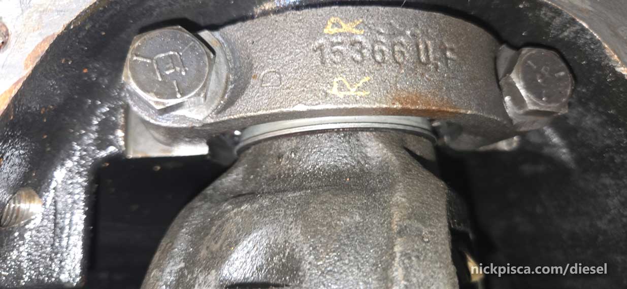 Made sure that my bearing caps were torqued down and on the correct side and orientation as original. Here are the bearing caps and the shims on the right side.