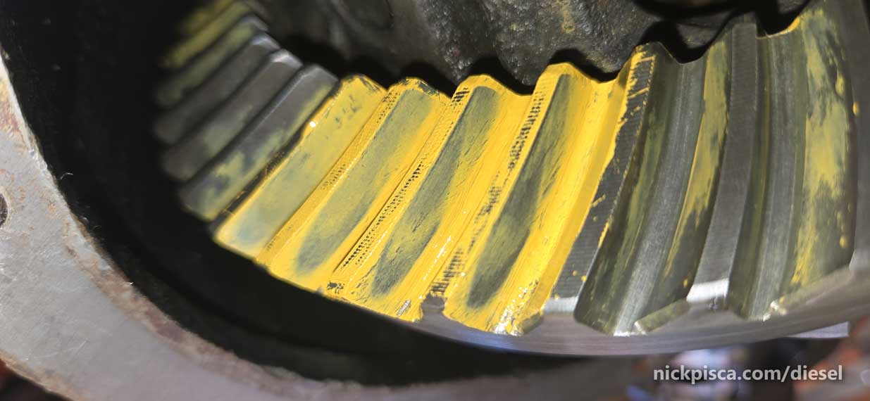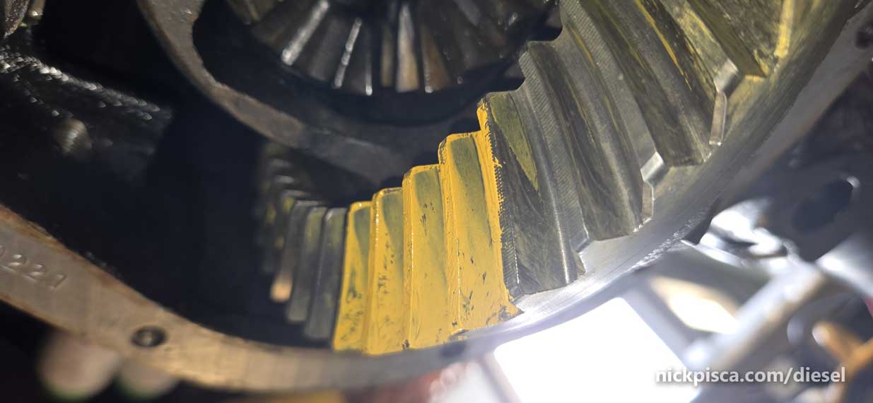 Well, this is way too inward (or to the “toe”) of the ring gear. No good. This will wear funny over time.