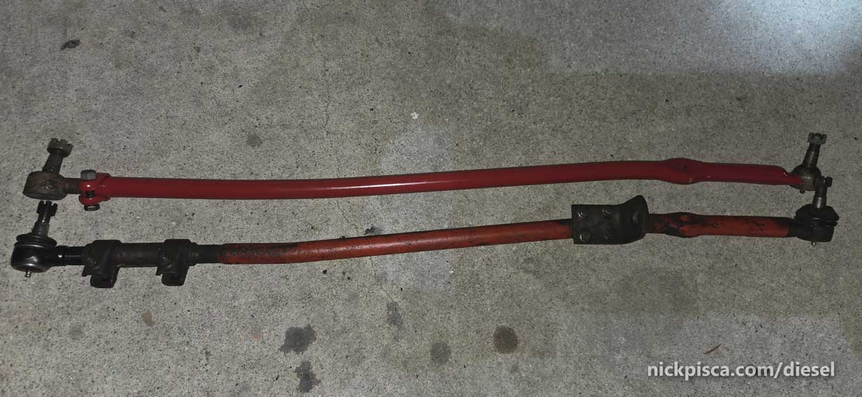 Top: The Pathfinder tie rods. Bottom: The Econoline tie rods. Both look very similar, but the Pathfinder is slimmer and slightly more bent around the eyelet area.